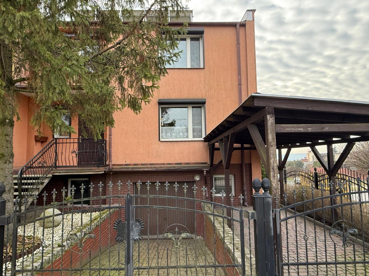 Całość w pełni ogrodzona - ogrodzenie metalowe kute.