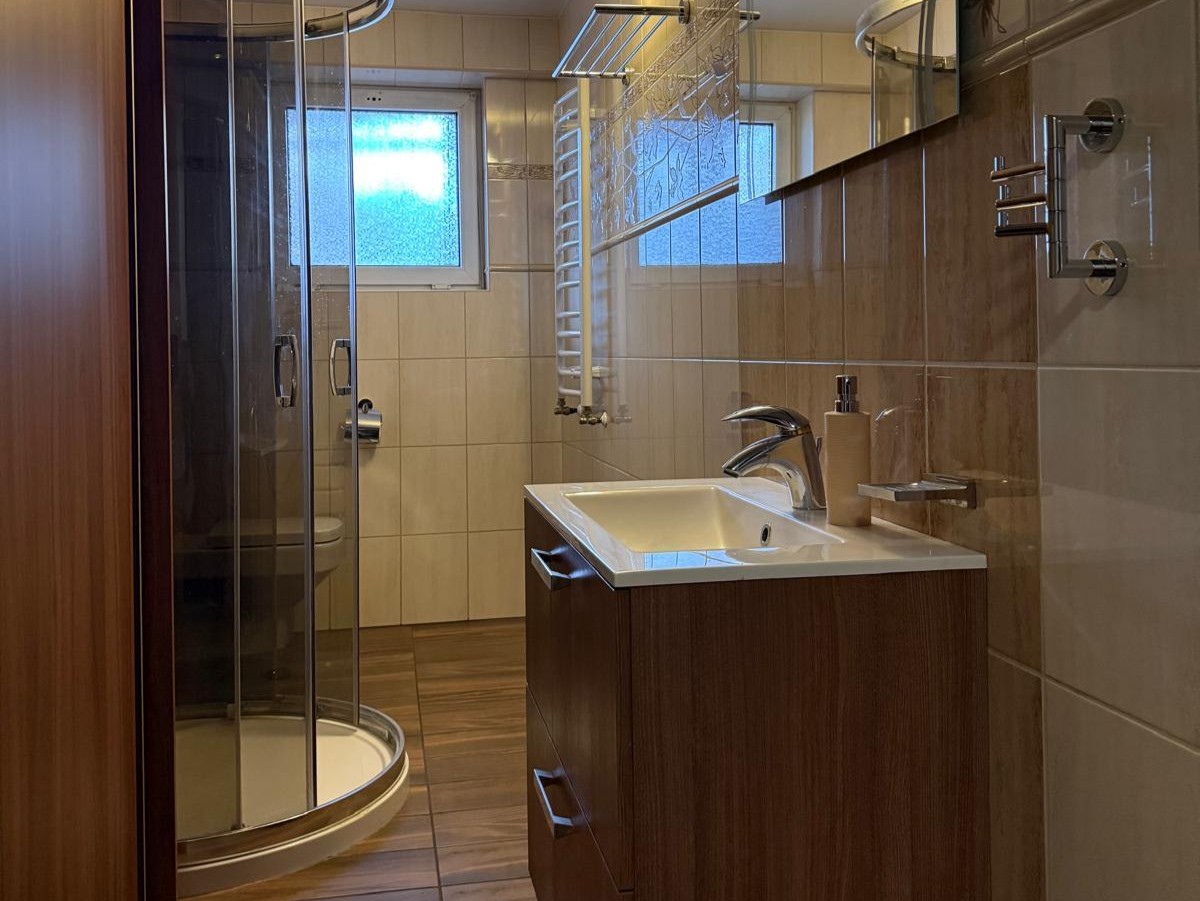 Dom posiada użytkową piwnicę, która może stanowić odrębne mieszkanie, składające się z dwóch pokoi, kuchni oraz łazienki.